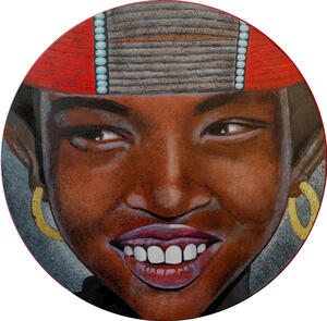 Meisje uit de Masai cultuur op rond paneel van MDF.