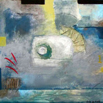 2010Het doek "Meditatie" geeft een abstracte weergave van de diverse lagen die men tegen kan komen in de geest gedurende het meditatieve proces. Soms vindt men iets heel moois aangeduid door het goud. Aan de oppervlakte is de geest vaak onrustig aangegeven door de blauwe golven. Verder kan men duidelijk een soort innerlijke ruimte ervaren, er zit een dieptewerking in het schilderij die heel fascinerend kan werken.